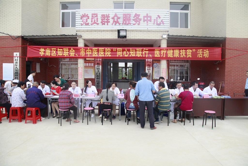 祝站鎮(zhèn)土門村是精準(zhǔn)扶貧重點(diǎn)村,該村74戶貧困戶中因病、因殘致貧的有29戶76人,為了解決他們有病不看,看病難、看病貴的難題,區(qū)知聯(lián)會會同市中醫(yī)醫(yī)院到該村村委會開展義診和送政策活動。在該村黨員群眾服務(wù)中心前,以中醫(yī)院院長張雙斌為首的專家團(tuán)耐心細(xì)致地解答群眾的咨詢,為群眾測量血壓血糖、聽診治療、開具處方,為當(dāng)?shù)卮迕窈透浇秃拥?,樂畈,張崗等村的群眾提供了便捷的免費(fèi)醫(yī)療服務(wù)。