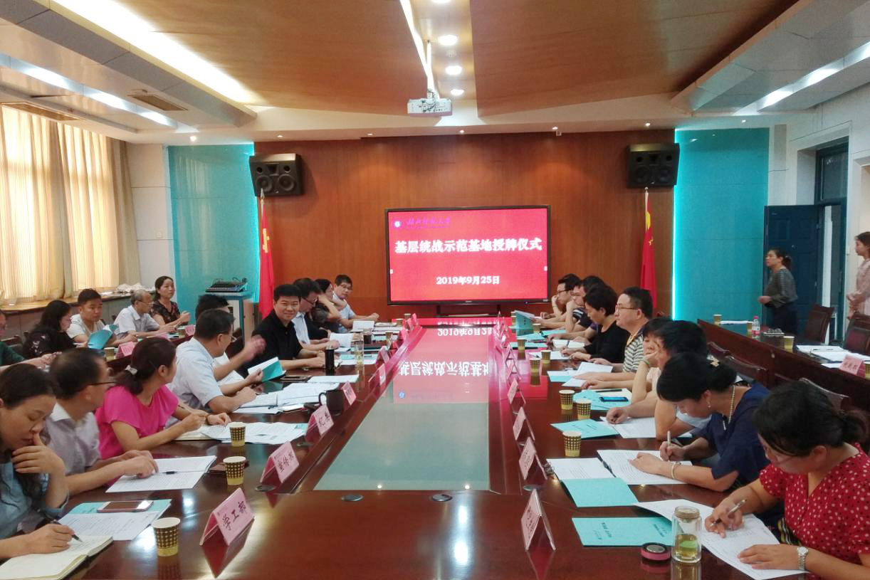 會上,統(tǒng)戰(zhàn)部負責人宣布了學校2019年基層統(tǒng)戰(zhàn)工作實踐創(chuàng)新基地示范點立項名單。校領(lǐng)導(dǎo)為文學院、數(shù)學與統(tǒng)計學院、化學化工學院、音樂學院、離退休黨委等新立項的統(tǒng)戰(zhàn)基地授牌。馬克思主義學院黨總支負責人介紹了本單位“統(tǒng)戰(zhàn)知識宣傳普及基地”的經(jīng)驗和做法。