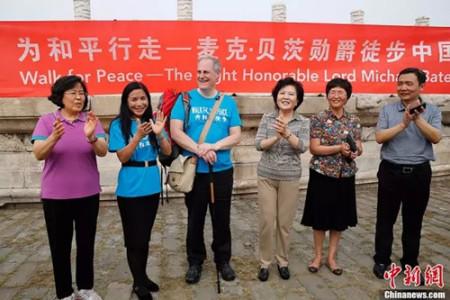 今年夏天,英國(guó)政府內(nèi)政部國(guó)務(wù)大臣麥克·貝茨勛爵和他的華裔夫人李雪琳在中國(guó)展開(kāi)了“為和平行走”徒步之旅。習(xí)近平在英國(guó)國(guó)會(huì)演講中提到他們:“最近,英國(guó)議會(huì)上議院議員麥克·貝茨勛爵在中國(guó)開(kāi)展了為期兩個(gè)多月的慈善徒步行走,他頂著烈日步行約1700公里,將募捐來(lái)的善款投入中國(guó)的慈善事業(yè),并呼吁人們珍愛(ài)和平。”