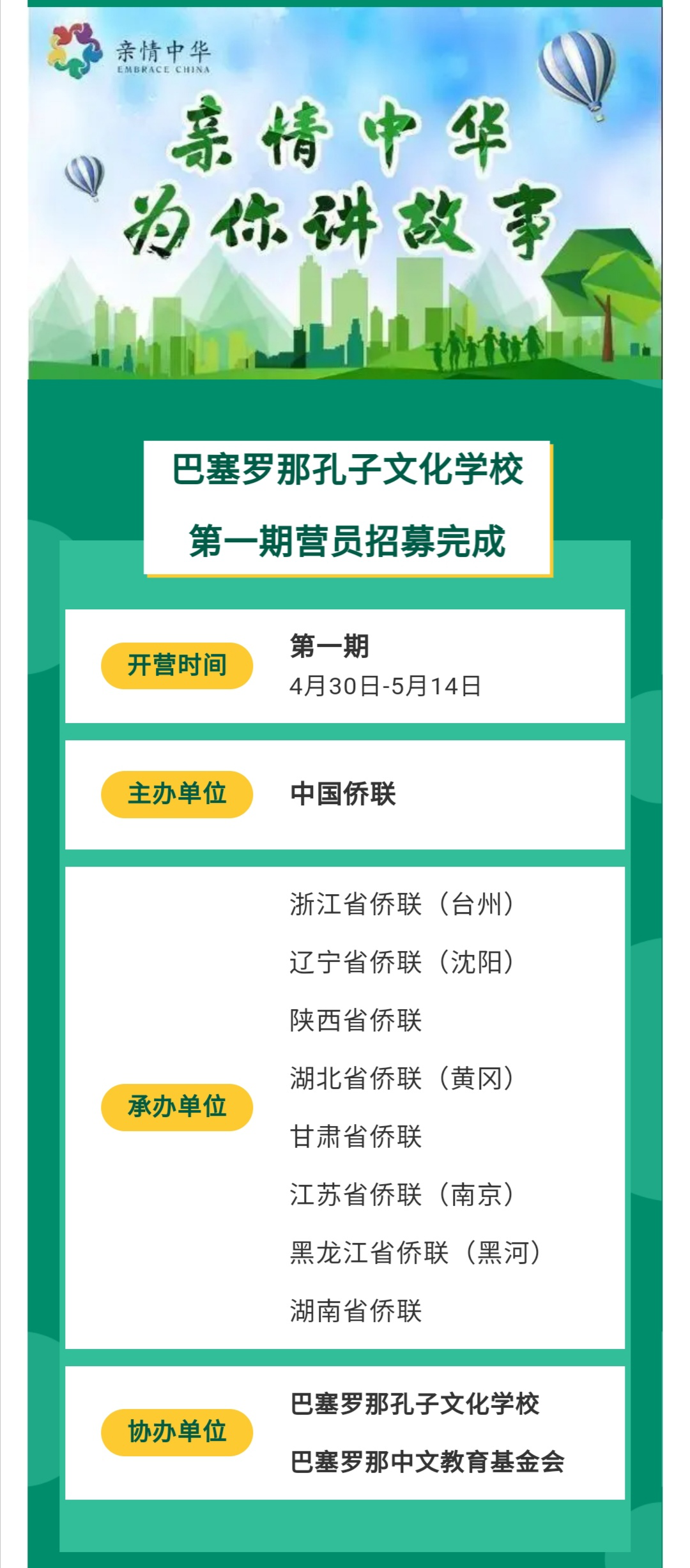 受新冠肺炎疫情影響,海外華裔青少年無(wú)法來(lái)中國(guó)參加夏令營(yíng),為幫助廣大海外華裔青少年在疫情期間繼續(xù)學(xué)習(xí)中文、了解中國(guó)國(guó)情和中華文化,并獲取抗疫知識(shí),中國(guó)僑聯(lián)創(chuàng)新推出了“親情中華?為你講故事”網(wǎng)上夏令營(yíng)活動(dòng)。黃岡市僑聯(lián)對(duì)接西班牙巴塞羅那孔子文化學(xué)校,承辦此次為期15天的活動(dòng)。