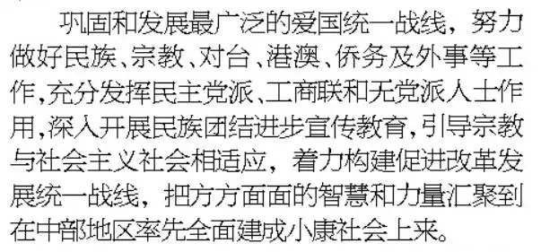 上述文字是省委“十三五”規(guī)劃建議第八部分“加強和改善黨的領導,以全面從嚴治黨保障經(jīng)濟社會發(fā)展”中有關(guān)統(tǒng)一戰(zhàn)線工作的內(nèi)容。